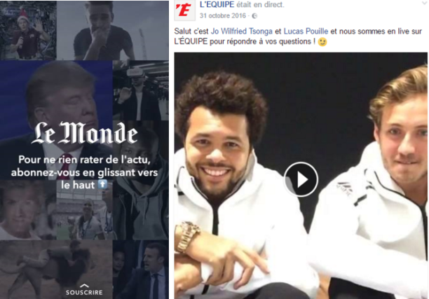 Page Le Monde sur Snapchat Discover / Jo Wilfried Tsonga et Lucas Pouille en Facebook Live pour L’Equipe.fr