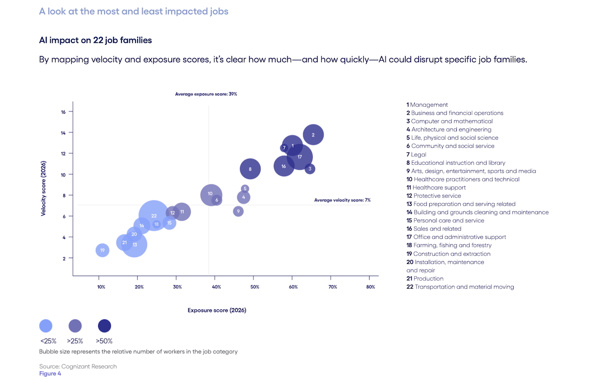 Une étude de Cognizant révèle que 93 % des emplois pourraient être impactés par l’IA dès 2026. Quels métiers sont les plus exposés à cette transformation ?