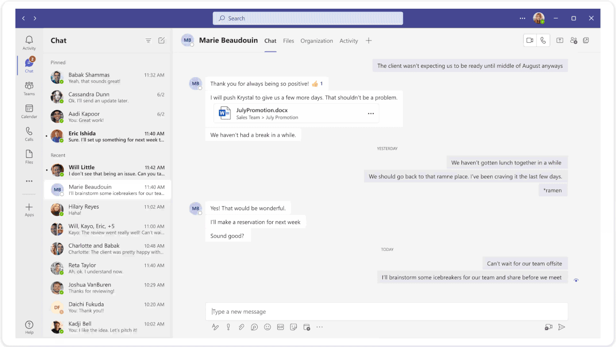 Microsoft a également annoncé de nouvelles fonctionnalités, à venir ou d’ores et déjà disponibles, concernant le chat et la collaboration au sein de Microsoft Teams. Parmi ces nouveautés, on retrouve :