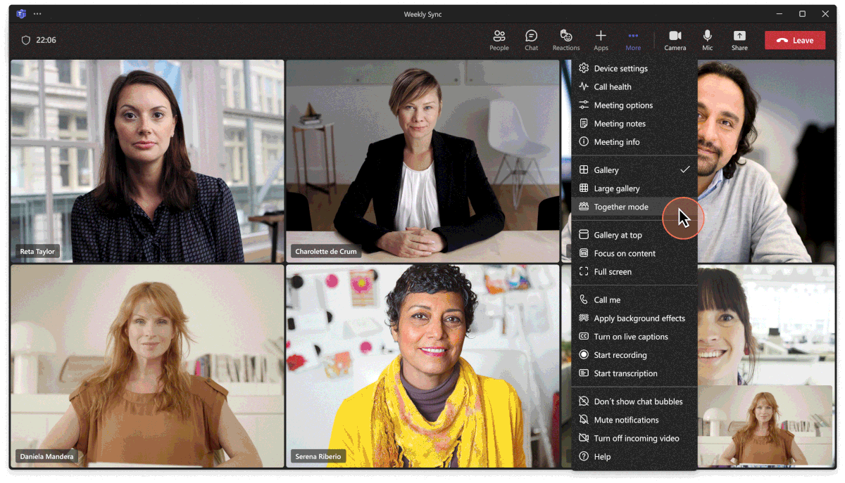 - Together Mode : Microsoft propose de nouvelles améliorations pour son Together Mode, pour des réunions à plusieurs et plus dynamiques, telles que la possibilité pour les organisateurs et présentateurs d’attribuer des sièges à des participants à une réunion sur Microsoft Teams ou encore de faire en sorte que tous les participants aient la même vue.
