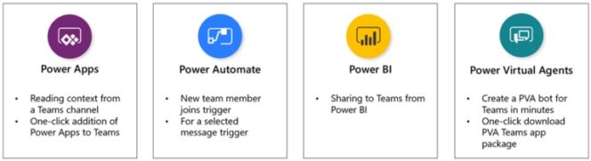 Microsoft améliore également sa suite d’outils Power Platform, qui permet d’intégrer de nouvelles applications dans Teams. De nombreuses fonctionnalités ont été annoncées, comme l’ajout de boutons simplifiés Power Apps and Power Virtual Agents pour rationaliser l’ajout de solutions personnalisées dans la boutique d’apps de Teams, l’automatisation améliorée du flux de travail avec Power Automate + Teams, un meilleur partage d’informations de Power BI vers Teams, ou encore des bots low-code ajoutés à Teams avec Power Virtual Agents pour simplifier la création de chatbots.