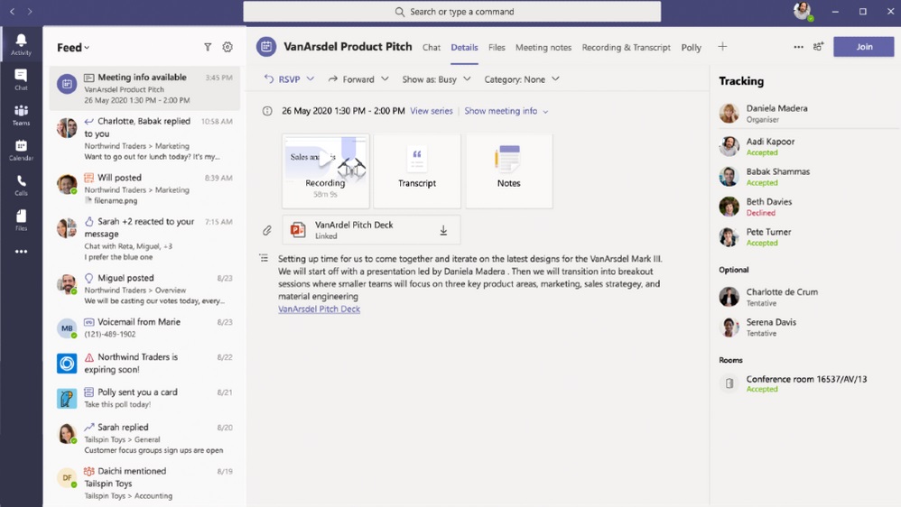 Autre fonctionnalité qui facilite la collaboration : les organisateurs pourront proposer aux spectateurs un récapitulatif de la réunion. Enregistrements audio, transcriptions, discussions et fichiers partagés seront téléchargeables à la fin du meeting et disponibles sur le calendrier Outlook également. D’ici quelques mois, ces résumés seront aussi disponibles sur SharePoint afin de faciliter le partage à tous les utilisateurs.