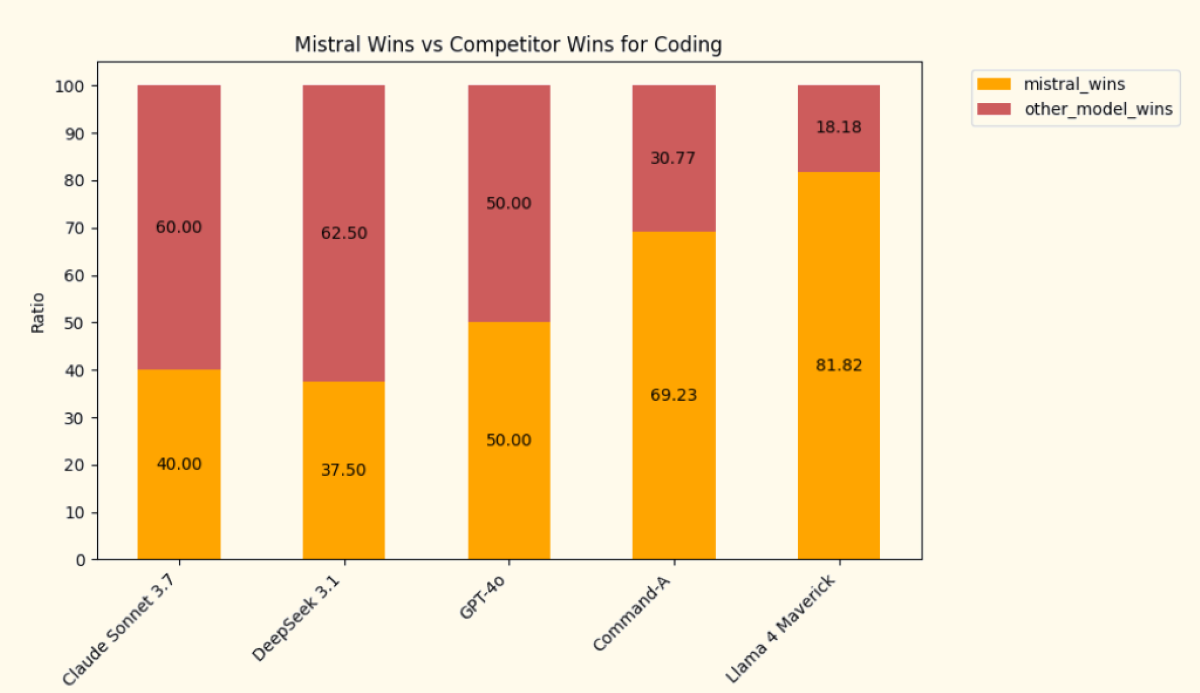 Du côté des performances, Medium 3 réalise de très beaux scores lors des tests réalisés par la plateforme. Le modèle arrive même en tête en termes de codage et de compréhension multimodale, des services essentiels pour une utilisation professionnelle.