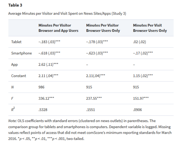 La consommation de pages web sur mobile est donc, certes plus soutenue, mais aussi plus volatile. Pour les chercheurs de l’université texane, exposition ne veut pas dire attention : « Pour certains, l’accès mobile est la seule possibilité d’exposition aux actualités numériques, pour d’autres, des opportunités élargies. L’attention, l’apprentissage et la capacité de discerner les faits de la fiction sont limités sur les appareils mobiles. Même si l’accès mobile prolifère, l’attention portée aux nouvelles diminue. »