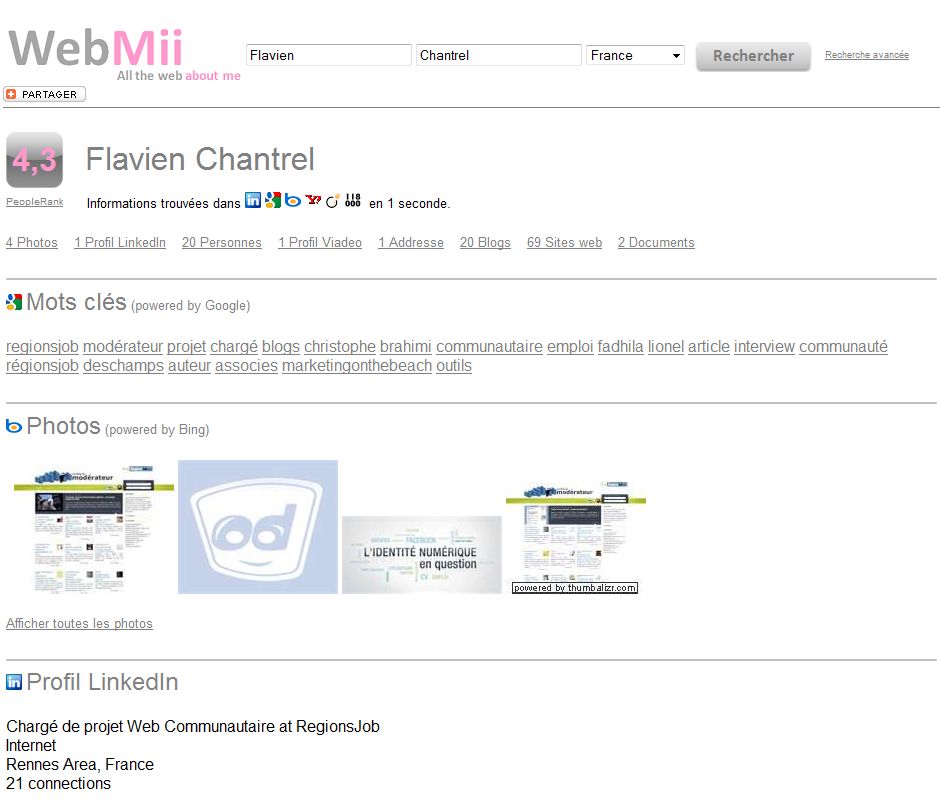 Assez complet en effet un peu comme 123 people. En revanche pour les photos je ne comprends pas comment se fait la sélection en tapant mon nom je vois un certain François Mathieu avec un pistolet à eau. C’est qui ce terroriste ?