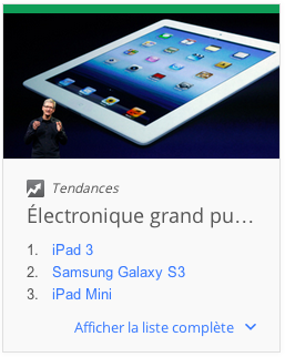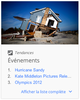 Les tendances présentent les recherches ayant enregistré le plus de trafic pendant une période donnée 2012 par rapport à la même période en 2011. Les recherches quant à elles se basent sur le nombre de requêtes seulement.
