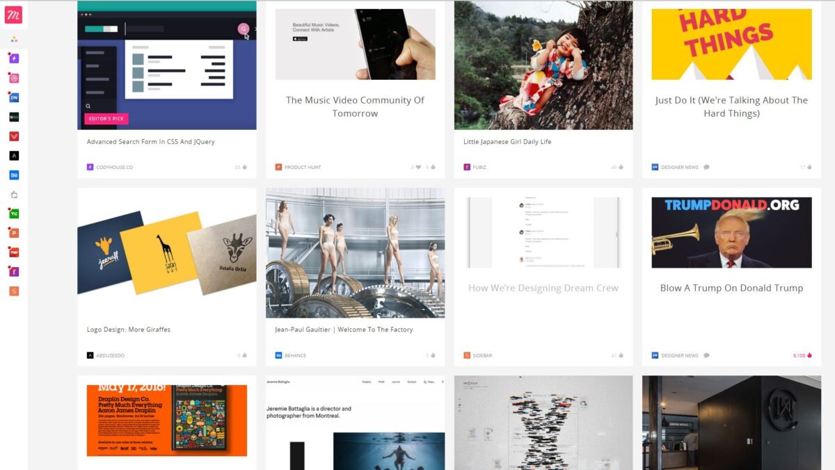 Voici une extension qui est une véritable pépite : Muzli. Elle s’installe sur Chrome en quelques secondes, et vous accompagne à chaque fois que vous lancez un nouvel onglet. Au lieu d’avoir une page blanche, ou google.com, vous aurez une curation des meilleurs contenus créatifs et design du web. C’est une curation manuelle, ce qui explique sa qualité. Les ressources utilisées sont nombreuses : Fubiz, ProductHunt, TechCrunch, Designer News, Codyhouse, Behance, CSS Winner… De très nombreux sites, et c’est l’équipe de Muzli qui fait votre veille à votre place.