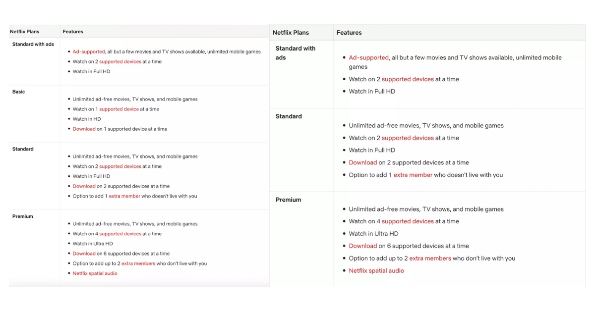En 2022, Netflix a introduit une nouvelle offre tarifaire, la moins coûteuse proposée par la plateforme de streaming. Cette formule, appelée en France Standard avec pub ou Standard with ads à l’étranger, donne la possibilité de visionner les VOD du catalogue Netflix à condition de supporter quelques minutes de pub par heure. Son prix : 5,99 €. Pour profiter de la plateforme sans publicité, il faut débourser 8,99 € et opter pour le plan Essentiel (Basic à l’étranger). Mais les utilisateurs canadiens ont remarqué un changement discret dans les offres de Netflix ces derniers jours.