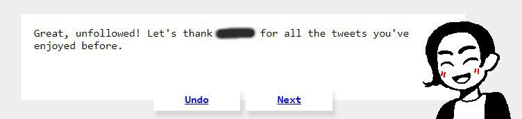 Le principe est simple. Tokimeki Unfollow se connecte à votre compte Twitter et passe en revue chacun des comptes que vous suivez. Il vous donne un aperçu des posts publiés par la personne et vous avez le choix entre trois possibilités :