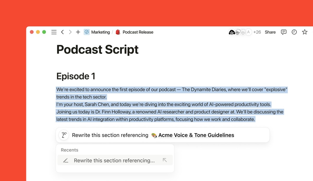 Notion AI est aussi un assistant rédacteur qui vous aide à réécrire vos textes existants et vous suggère des révisions pertinentes.