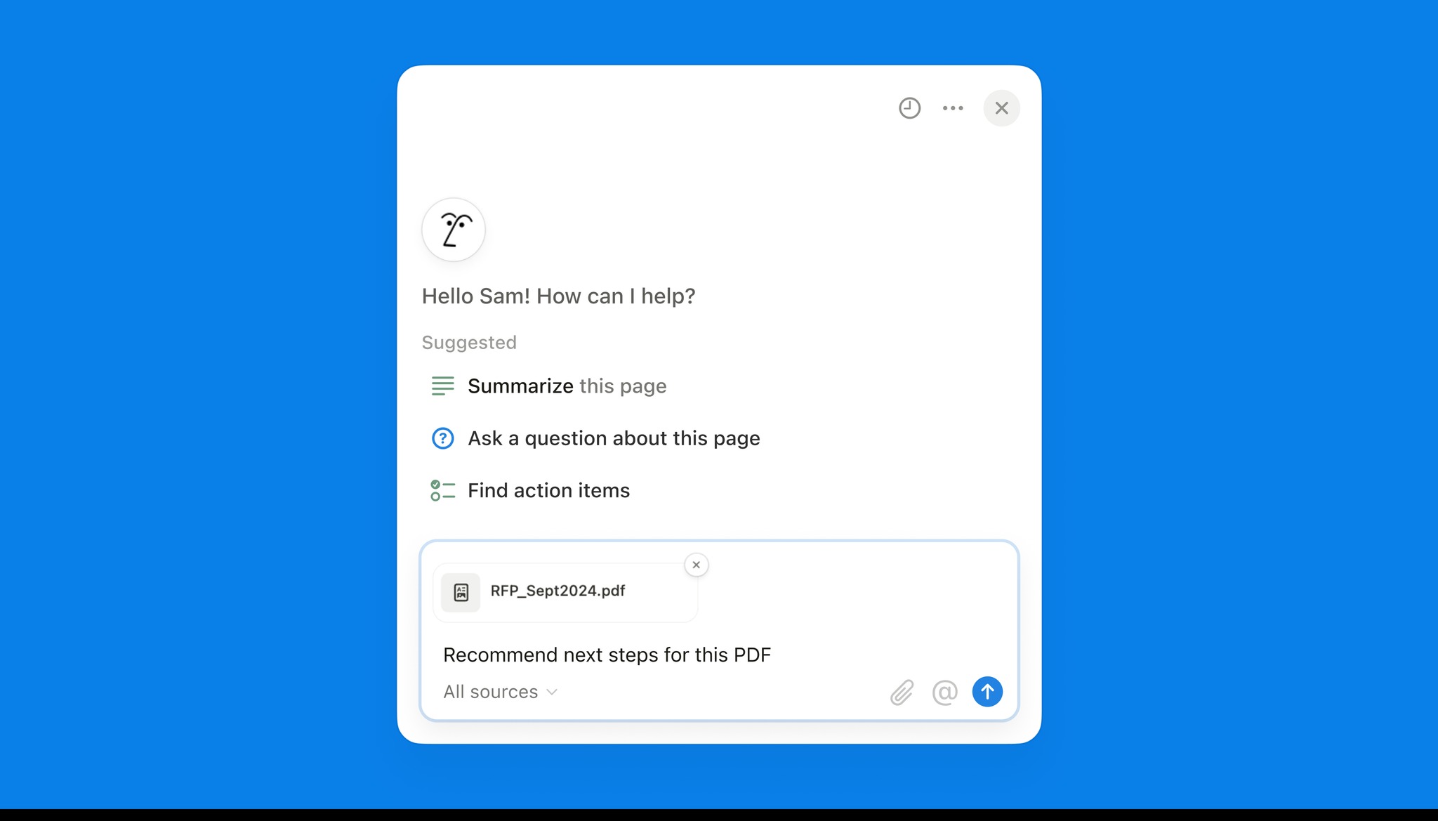 L’assistant de Notion peut également analyser votre document PDF pour vous. Vous pouvez lui demander de résumer son contenu et de vous livrer les prochaines actions à effectuer.