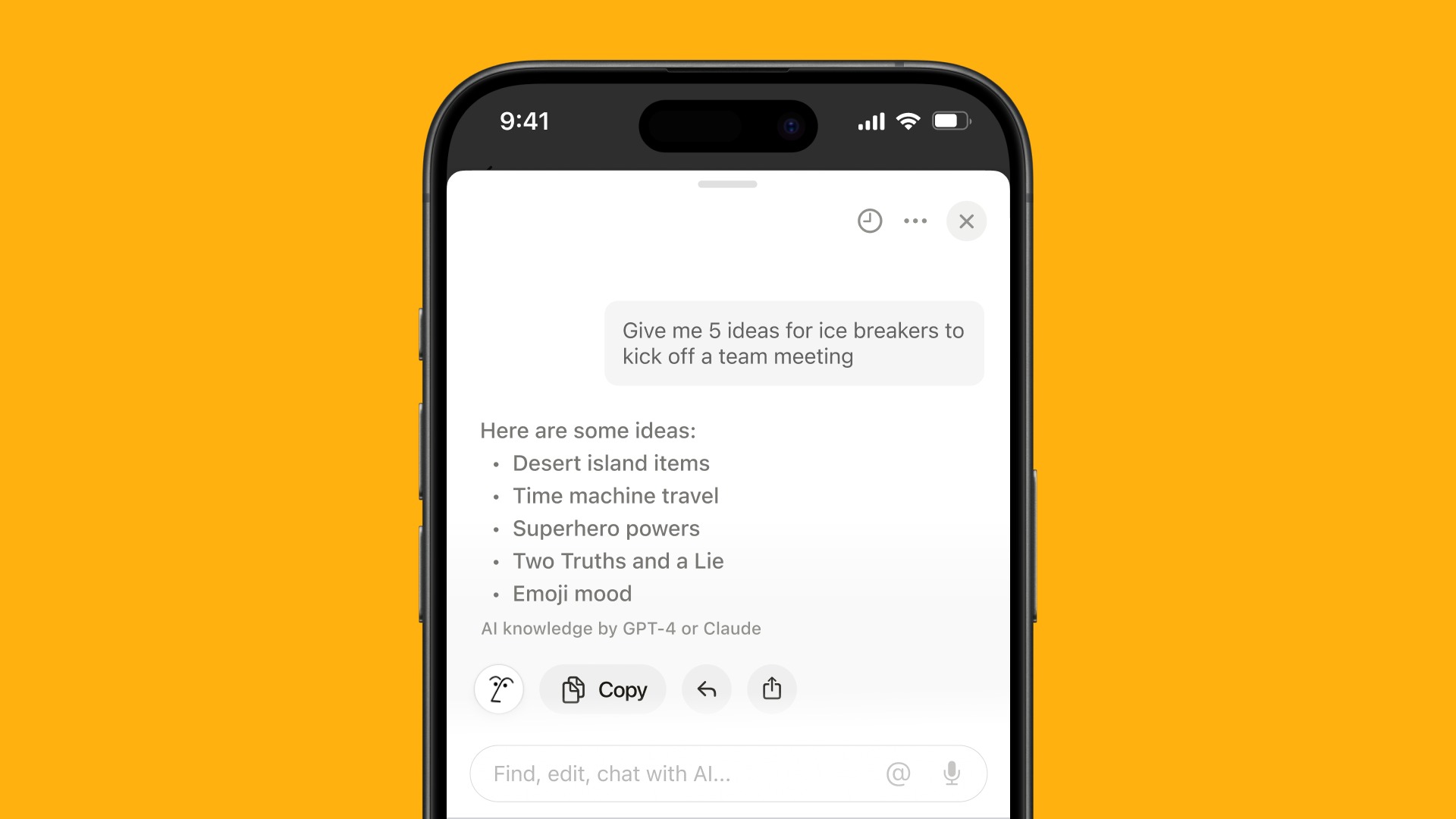 Notion AI devient un véritable chatbot, en étant connecté aux modèles GPT-4 et Claude Sonnet. Il propose une expérience utilisateur similaire à celle que vous pourriez avoir sur ChatGPT. Vous avez la possibilité de poser des questions directement dans Notion pour obtenir des conseils ou générer de nouvelles idées.