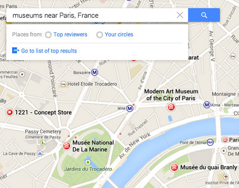 L’ensemble de la carte est désormais interactive et permet de mieux découvrir le monde. Les images des lieux sélectionnés sont rassemblées. Vous pouvez également comparer plusieurs modes de transport pour planifier un trajet : voiture, transports en commun, marche à pied, vélo, avion… Des suggestions personnalisées sont ajoutées au service, selon votre utilisation de l’outil (et bien évidemment, les données récupérées via les autres services Google comme Google+).