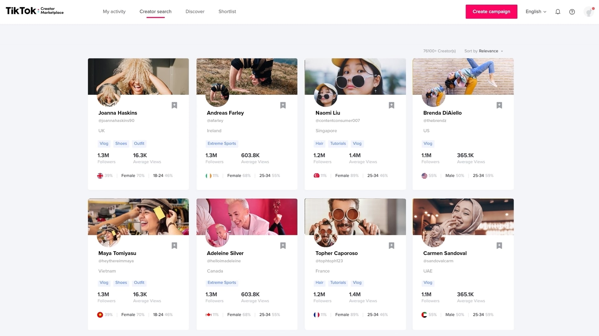 Lors de l’événement, le réseau social a annoncé la mise à jour de « TikTok Creator Marketplace », la plateforme dédiée aux collaborations entre les entreprises et les créateurs de contenu présents sur TikTok. Celle-ci permet notamment de découvrir des influenceurs qui sont prêts à réaliser des campagnes promotionnels pour des marques.