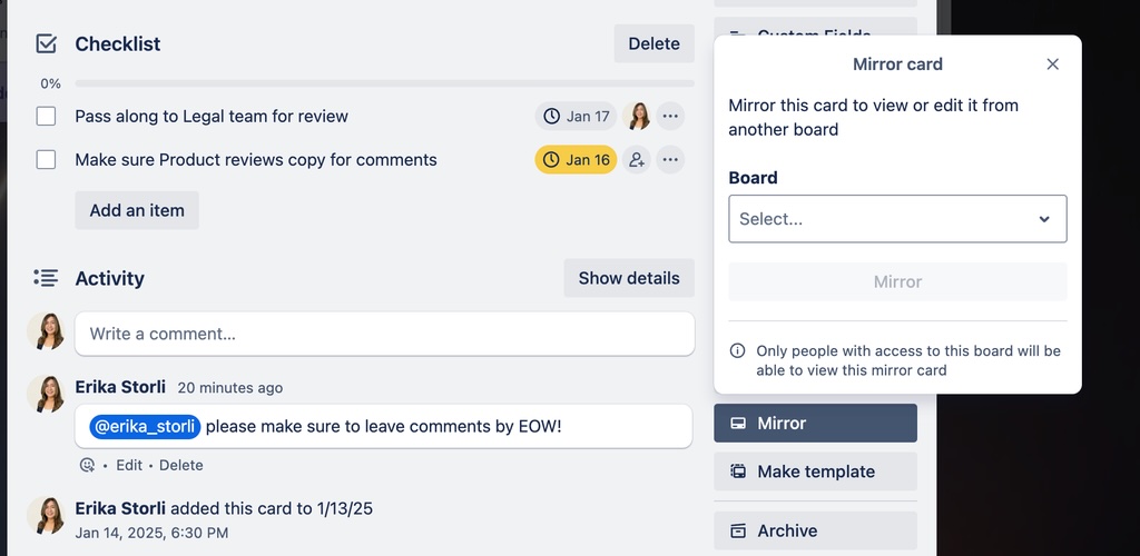 Nouveautés Trello : boîte de réception, calendrier synchronisé et fonction Miroir