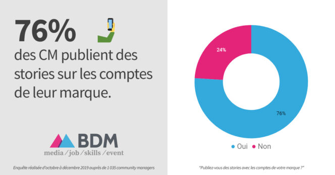 Ils étaient 35% en 2017, 54% en 2018… ils sont désormais 76%, soit les 3/4 des CM, à publier des stories sur les réseaux sociaux pour le compte de leur marque.