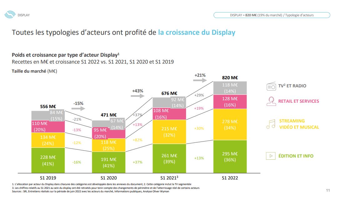 Les différents acteurs ont bénéficié de la croissance du display. Pour ce 1er semestre 2022 :