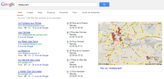 Les résultats de recherche sur Google varient suivant les requêtes. Dans certains cas, seuls des liens directs vers des sites sont affichés. Dans d’autres cas, de nombreux contenus viennent enrichir les résultats : actualités, réponses directes via le knowledge graph… Il arrive également qu’une carte soit affichée, pour géolocaliser certains résultats. Pour augmenter sa visibilité auprès des internautes, un commerce local peut apparaître sur cette carte, suivant les requêtes formulées. Mais certaines règles sont à respecter, et cela passe notamment par les paramètres de sa page sur Google+.