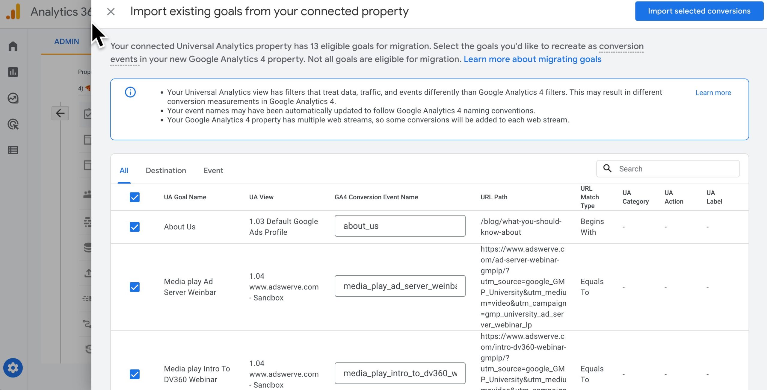 Google est en train de déployer un outil pour vous permettre de migrer vos objectifs existants d’Universal Analytics 3 vers Google Analytics 4.