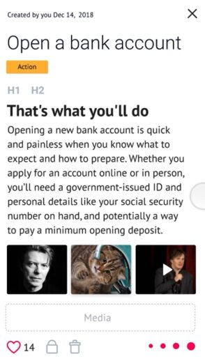 Les cartes sont éditables, à la manière d’autres outils de checklists comme Trello ou Columns. Et elles intègrent plusieurs formats de contenus différents : du texte, des images, des liens mais aussi des fichiers audios ou vidéos. Le plus de KnowFlow : vous pouvez dicter oralement vos cartes.