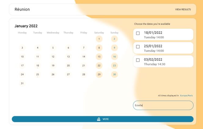 Cette alternative à Doodle offre la possibilité de concevoir des sondages gratuitement, sans avoir besoin de créer de compte et sans publicités affichées. Vous pouvez créer un sondage avec plusieurs dates pour fixer un événement (réunions, rendez-vous…) ou un sondage avec plusieurs réponses sous forme de texte. Il suffit ensuite de copier le lien pour envoyer votre sondage aux personnes concernées.