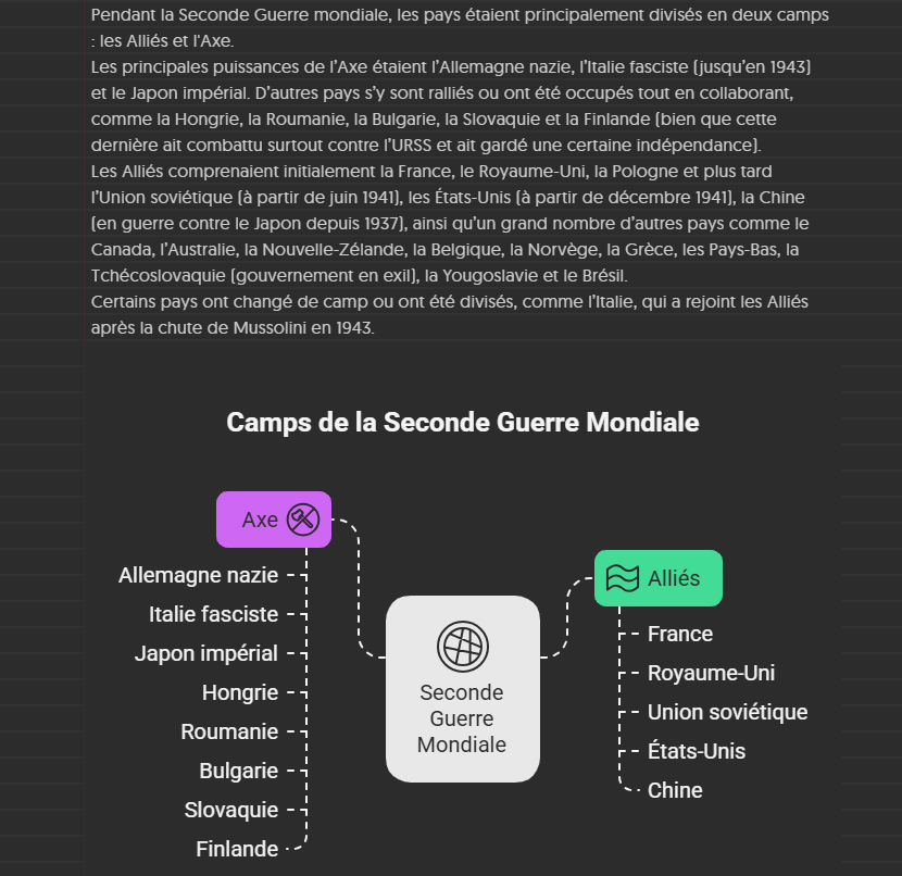 Pour cela, il suffit de lui transmettre un texte à analyser, pour ensuite vous proposer plusieurs cartes mentales correspondant à vos attentes. L’application propose une variété de visuels, allant de formats synthétiques à des cartes détaillées qui regroupent un plus grand nombre d’informations. Une fois votre visuel généré, il reste entièrement personnalisable. La création se fait en quelques secondes et l’outil dispose d’une version gratuite. Lorsque l’image générée vous satisfait, vous pouvez l’exporter en PDF, PNG, SVG ou PPT.