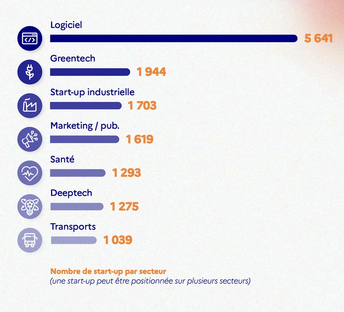 Le rapport révèle néanmoins une forte diversité sectorielle. Le logiciel reste en tête, représentant 31 % des startups et environ 123 000 emplois. Derrière, la greentech (11 %), les startups industrielles (9 %) et la marketing tech (9 %) confirment la transformation de l’écosystème. Santé et deeptech complètent ce paysage, chacune pesant 7 %. Ces domaines stratégiques répondent à des priorités nationales (souveraineté numérique, transition écologique, réindustrialisation) et tendent à montrer que l’innovation française ne se limite plus aux services numériques. Elle se déploie désormais sur des terrains à fort impact technologique et sociétal.