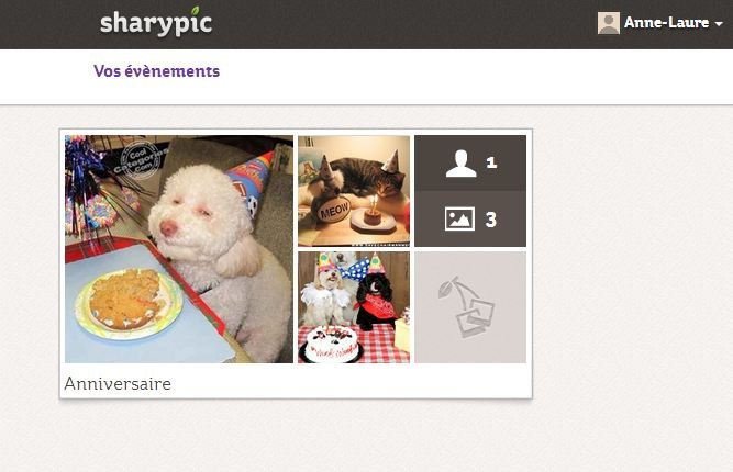 Start-up française, SharyPic est une plateforme photo collaborative, vraiment parfaite pour partager les photos d’un même évènement Il faut se créer un compte gratuitement pour pouvoir l’utiliser. Ensuite, vous pouvez réunir toutes les photos d’un même anniversaire, mariage etc, en provenance de diverses personnes. Le plan gratuit permet de compter jusque cinq contributeurs différents, et les photos seront disponibles pendant 3 mois. Pour augmenter le nombre de collaborateurs et allonger la durée de vie de l’évènement il faudra passer aux formules payantes, à partir de 9 euros en paiement unique. SharyPic est vraiment une excellente solution pour réunir des photos en provenance de diverses sources, en restant très facile d’accès pour tout le monde !