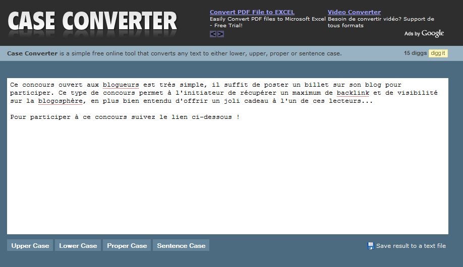 Une fois la transformation effectuée, vous pourrez sauvegarder votre texte en fichier .txt. Ce site vérifie l’adage « Mieux vaut faire peu de chose et le faire bien« . A garder quelque part dans ses favoris !