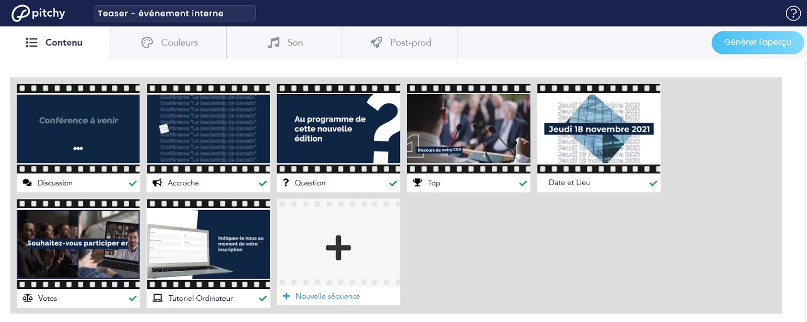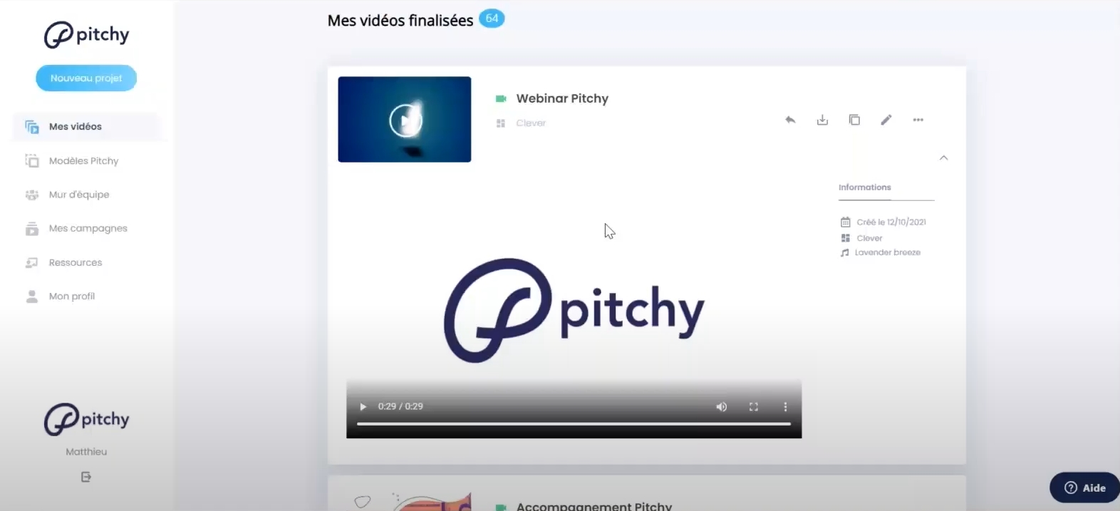 Si vous rencontrez la moindre difficulté lors de la création d’une vidéo, n’hésitez pas à contacter les experts Pitchy. Ils se tiennent à votre disposition pour vous accompagner, de la découverte de la plateforme à l’export final de votre réalisation. L’accompagnement proposé est entièrement personnalisé, et prévu pour faire monter vos compétences en vidéo. Les experts s’adaptent aux besoins de chacun. La solution propose également un grand nombre d’événements et de ressources pour vous accompagner : webinars, ateliers pratiques, pages d’aide…