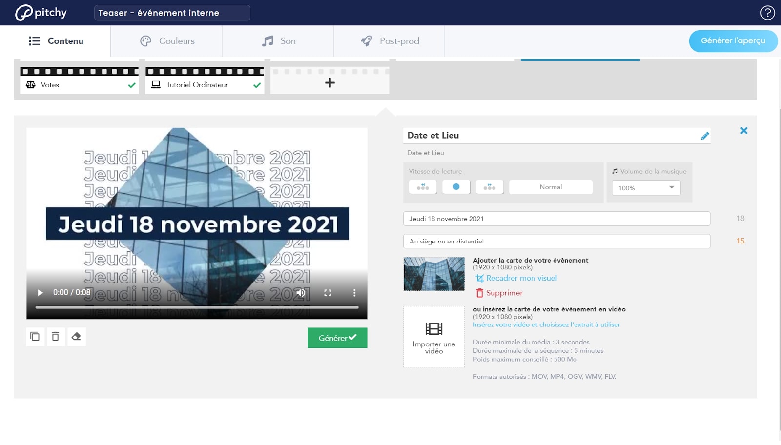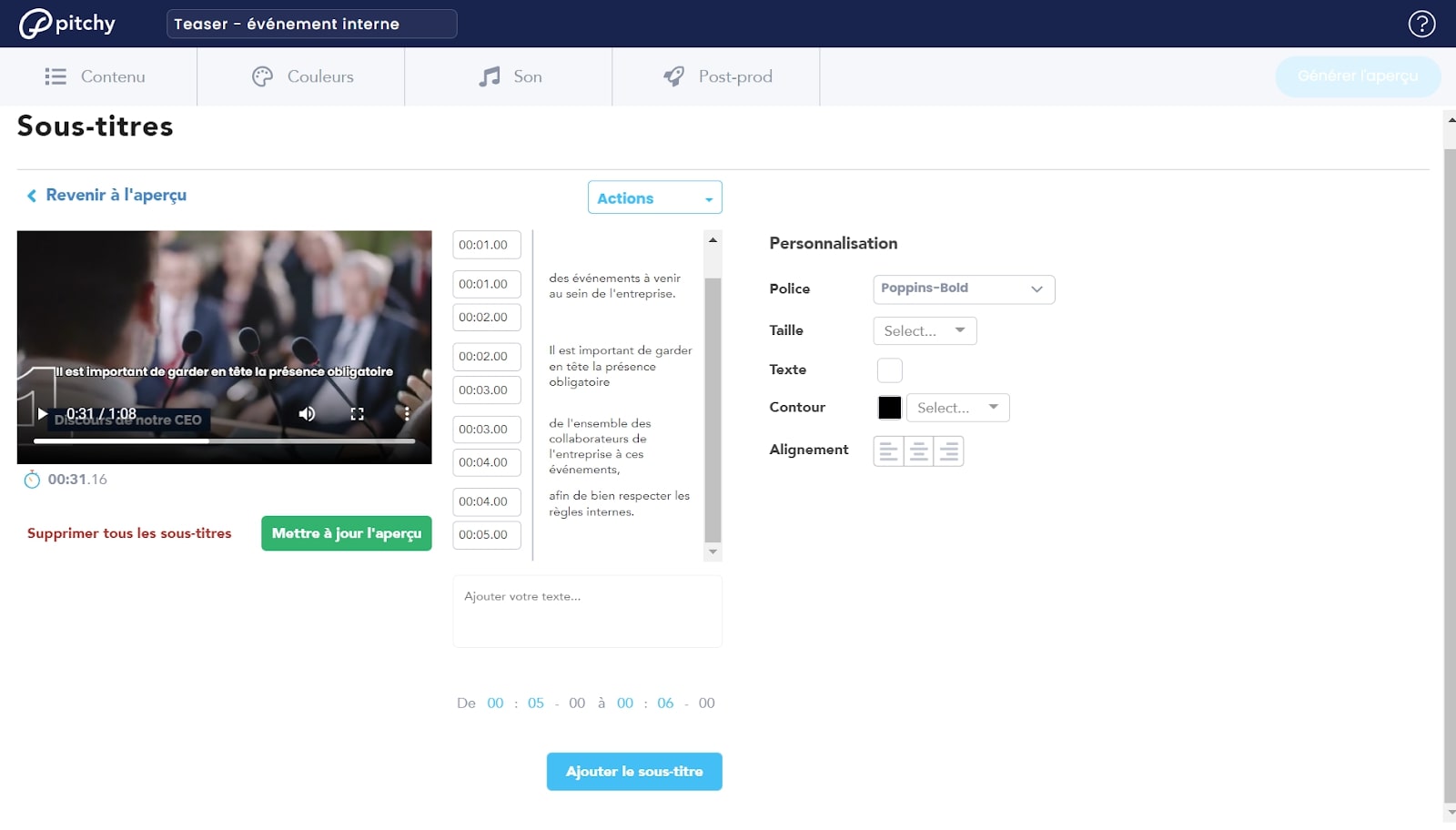 Pour garantir des vidéos d’une qualité professionnelle, Pitchy propose de nombreuses fonctionnalités dédiées aux retouches et à la post-production. Elles vous permettent d’améliorer certains détails avant la diffusion.