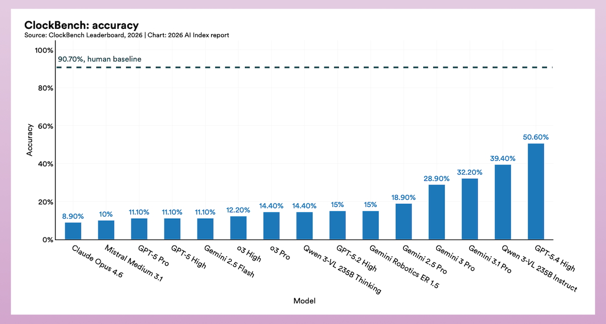 Une IA peut gagner une médaille d’or aux Olympiades de mathématiques, puis se tromper de plusieurs heures en lisant une horloge. Le rapport AI Index 2026 de Stanford documente ce paradoxe que les chercheurs nomment « jagged intelligence ».
