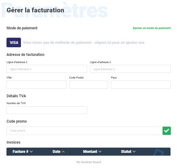 4- Sur la page facturation, entrez le code PPCProtectBDM