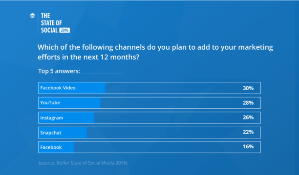 L’an prochain, la vidéo – sur Facebook – sera la priorité N°1 pour les community managers. 30% d’entre eux déclarent qu’ils intensifieront leurs efforts à ce sujet. YouTube est le second service cité par les répondants (28%), devant Instagram, Snapchat et Facebook.