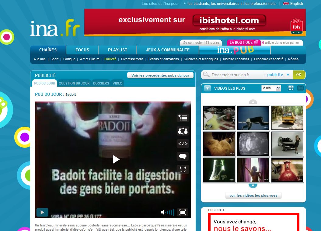 Ina pub : les médias ont fait la part belle à cette actualité. Le site de l’Ina recense désormais plus de 200 000 publicités gratuites en vidéo ! Ces dernières datent de 1968 à nos jours. A ne louper sous aucun prétexte !
