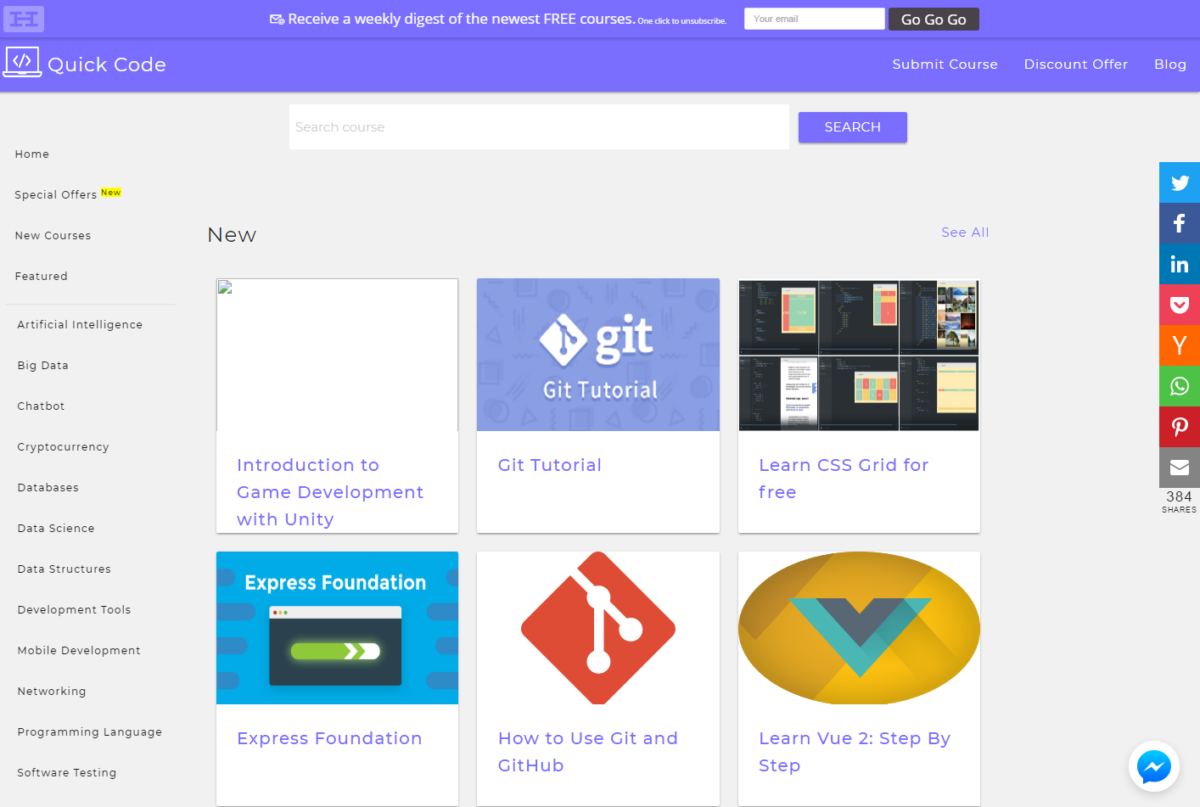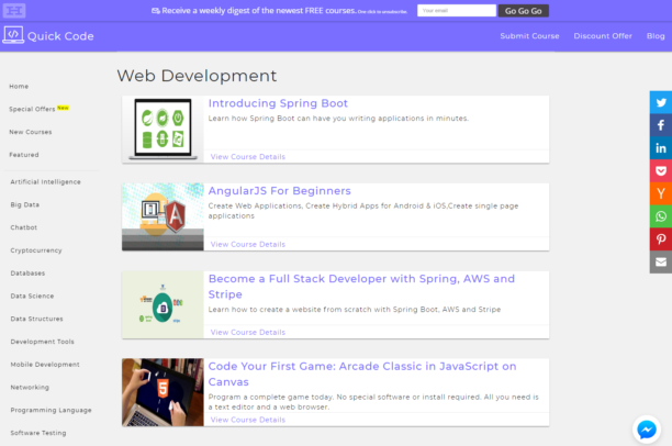 Les développeurs et professionnels du web sont fréquemment en recherche de sources pour se former aux nouveaux langages ou aux nouvelles technologies. Il existe de très nombreuses ressources, pas toujours facile à trouver. Quick Code est une vraie mine d’or puisque le site compile uniquement des formations en ligne gratuites.