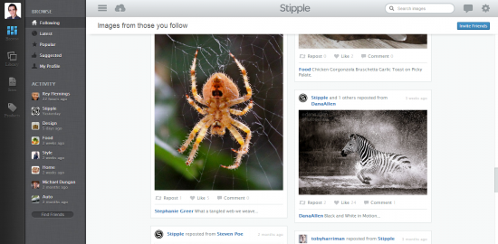 En effet, outre la possibilité de rassembler ses images publiées en ligne, Stipple met à disposition de ses utilisateurs les fonctionnalités habituelles des réseaux sociaux :