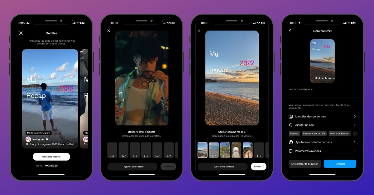 L’année 2022 touche à sa fin, et Instagram a bien l’intention de fêter ça ! Pour l’occasion, la plateforme propose 4 nouveaux modèles de Reels, qui vous permettent de créer un résumé de votre année, sous la forme d’une vidéo verticale. Pour rappel, Instagram a déployé l’option des modèles l’été dernier, pour inciter les utilisateurs à créer davantage de Reels sur sa plateforme.
