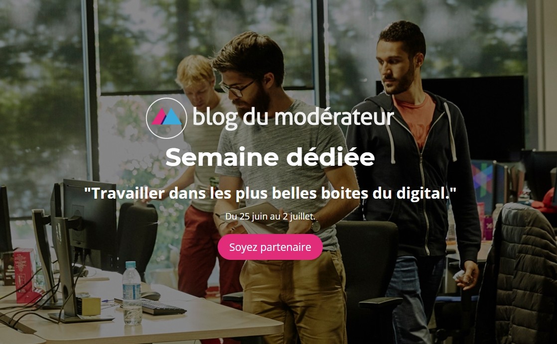 Nous organisons une semaine spéciale dédiée à l’emploi dans le digital du 25 juin au 2 juillet sur le Blog du Modérateur. Notre volonté est de mettre en avant les entreprises qui recrutent, et d’aider les candidats à travailler dans les pure-players et startups les plus attractifs. Pour cela, nous vous avons concocté un programme éditorial dédié : focus sur les entreprises qui comptent, besoins en recrutement pour les prochains mois, sélections d’offres d’emploi par métiers…Tous les métiers du digital sont concernés : développement web, marketing, acquisition, gestion de projet, communication, design et intégration, biz dev… Une semaine pour prendre le pouls des opportunités dans les plus belles boites du web !