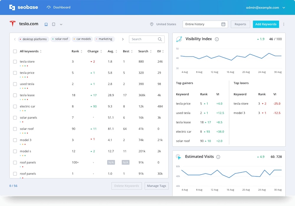 seobase : une plateforme SEO de suivi de positionnement et d’analyse de mots clés