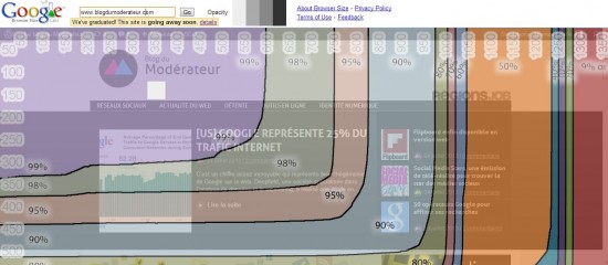 - Google Browser Size : votre site Internet selon les résolution d’écran des internautes – Les résolutions d’écrans varient du simple au triple… Du coup, les internautes ne voient pas les mêmes contenus du premier coup d’œil. Ce service Google, qui devrait être fermé depuis juillet 2012, est toujours disponible et permet de mieux cerner les résolutions des internautes.