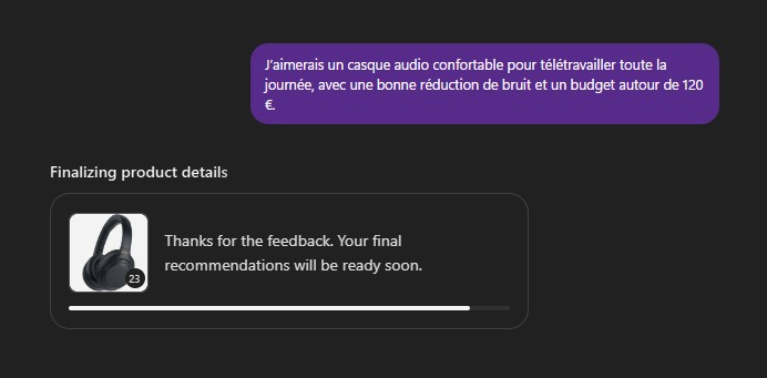 Shopping Research transforme la découverte de produits en un dialogue : il pose les bonnes questions pour cerner vos besoins, recueille des informations précises et actualisées auprès de sources fiables et vous propose différentes options pour affiner votre recherche.