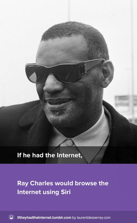 Et si les personnages historiques avaient eu Internet ? C’est la question existentielle que s’est posée Laurent Desserrey dans un Tumblr hilarant. De Marie Antoinette à Ray Charles en passant par Napoléon, il imagine l’utilité du web pour des personnages marquants. Et ces réflexions anachroniques ne manquent pas d’humour d’autant plus que les personnages sont toujours bien choisis. Et à titre personnel je me suis toujours demandé ce que Cléopâtre ferait d’un compte Dropbox ! Les références sont bien vues et traversent toute l’histoire de l’humanité.
