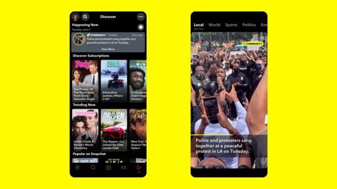 Certaines nouveautés sont seulement déployées aux États-Unis mais pourraient rapidement être lancées dans le monde entier. On retrouve notamment la bannière « Happening now » intégrée à l’onglet « Discover », qui permet à des partenaires tels que The Washington Post d’ajouter des mises à jour de stories.