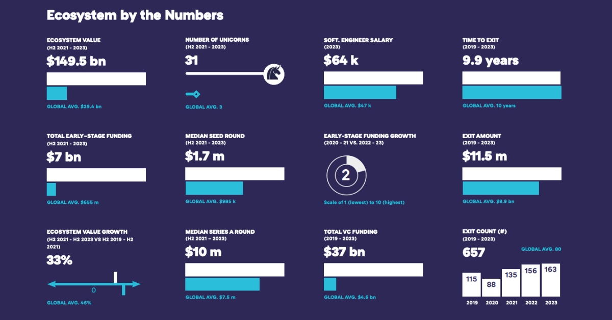 Le Global Startup Ecosystem Report met notamment en avant les écosystèmes les plus dynamiques et matures du globe. Il permet d’identifier les « 40 meilleurs écosystèmes mondiaux, plus matures que les autres à l’échelle mondiale, avec davantage de grandes sorties (évaluées à plus de 50 millions de dollars et une activité de financement plus importante ». En voici les principaux enseignements :