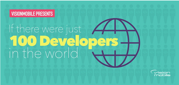 A quoi ressemblerait la démographie des développeurs s’ils n’étaient que 100 à travers le monde ? Dans quels pays seraient-ils ? Combien y aurait-il de femmes ? En quels langages coderaient-ils ? Voici quelques questions sur lesquelles les équipes de visionmobile.com se sont penchées pour leur enquête annuelle Developer Economics (30 000 développeurs participants).