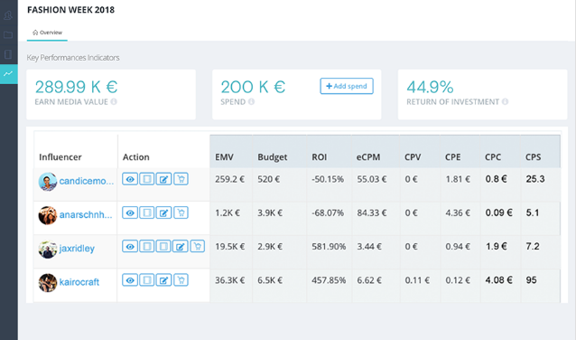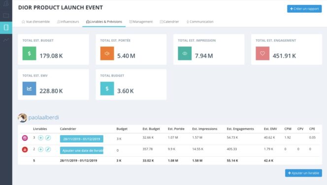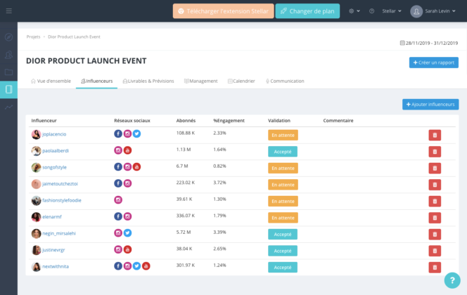 Un autre atout de Stellar est de vous permettre de planifier vos campagnes et les gérer sur un même endroit : publications prévues, budgets des influenceurs, performances estimées, coûts réels…