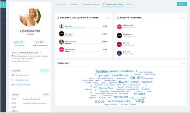 Chose rare pour un outil, Stellar fait aussi remonter les marques affinitaires de chaque profil suivi ainsi que les partenariats rémunérés passés. Là, encore le fait d’automatiser et centraliser ces données fait gagner énormément de temps aux professionnels de l’influence.