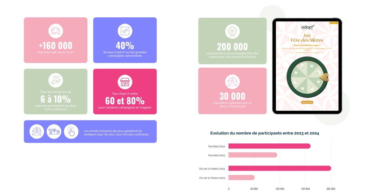 - Une campagne de la fête des mères intégrant une roue de la fortune, qui a attiré plus de 200 000 participants et généré 30 000 inscriptions via un seul email.