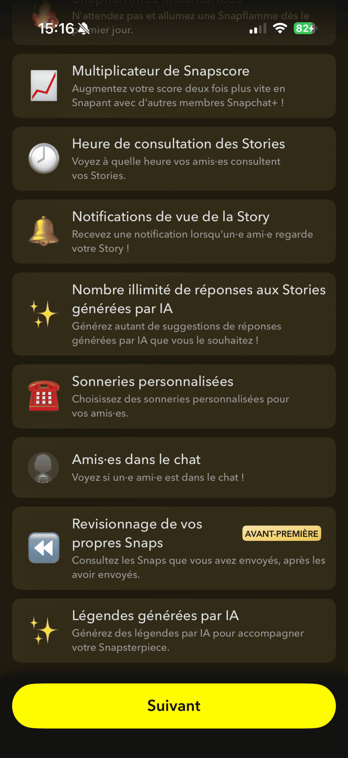 Ces revenus directs proviennent notamment de Snapchat+, l’offre payante de Snapchat lancée en 2022. Celle-ci permet aux abonnés, en échange de quelques euros, d’accéder à des fonctionnalités exclusives telles que la personnalisation de l’interface, un accès anticipé aux nouvelles fonctionnalités, un accès aux outils IA avancés, ou encore la récupération de flammes perdues.